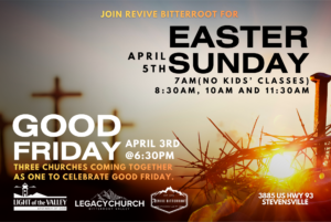 I know coming to a new church can be intimidating. What will the people be like, will I fit in? There are no perfect people here! We function as a family, God being our Father, Jesus our Savior and Holy Spirit our guide. It gets messy but that is what love is all about! Come check out our family, I think you will like what you find at Revive Bitterroot!